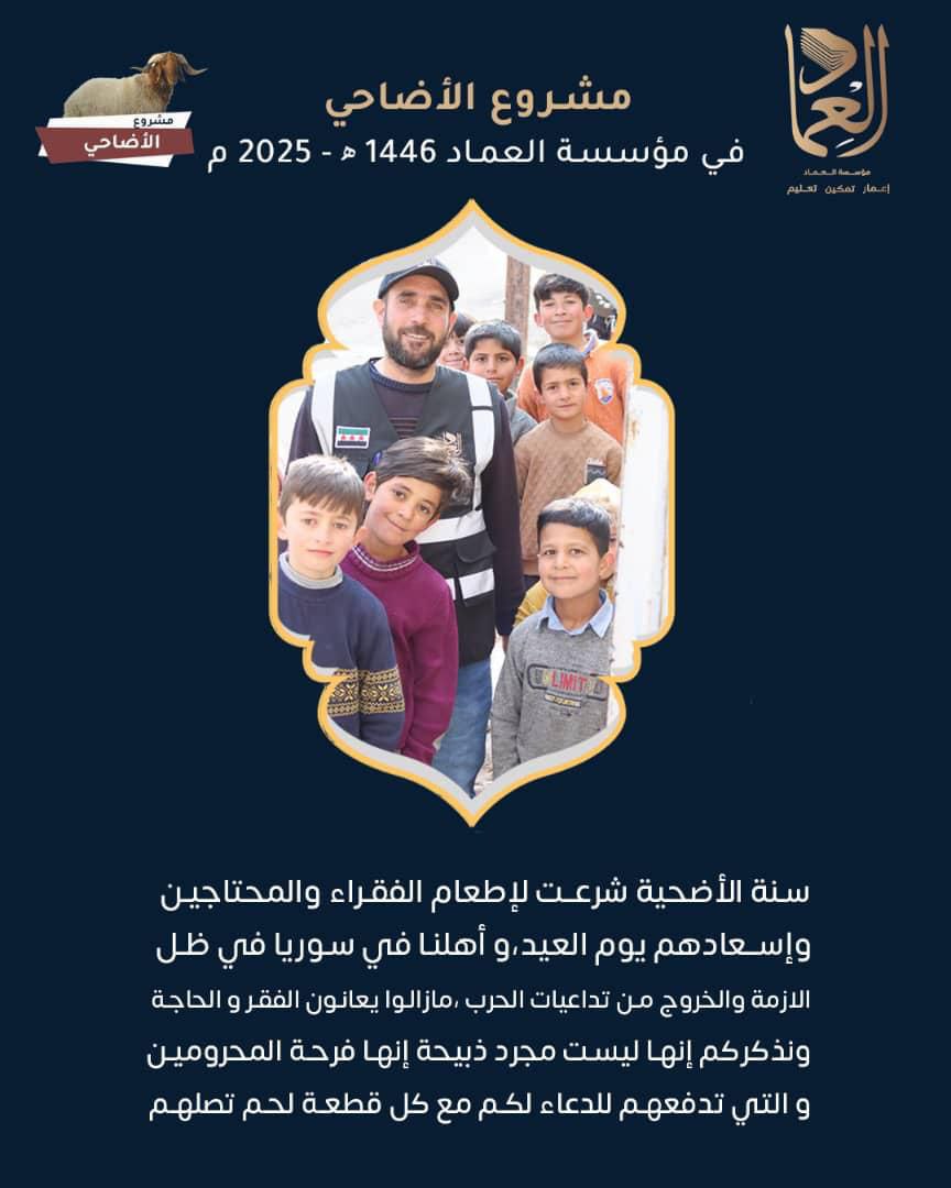 أهداف المشروع : إحياء سنة رسولالله عليه الصلاة و السلام في إقامة شعيرة الأضاحي سد حاجة الأرامل و الأيتام